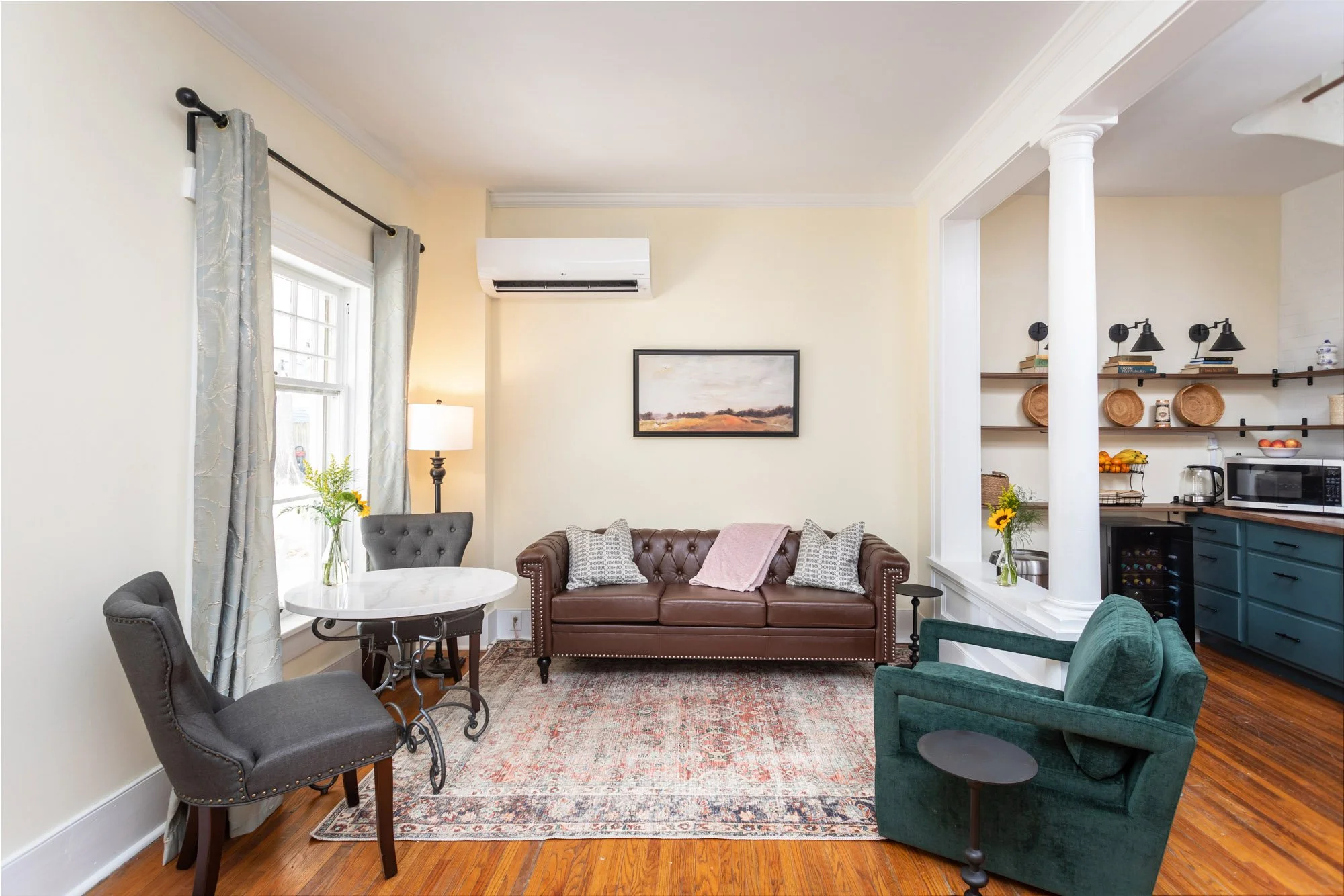 Perfect for groups up to six guests - this is a convenient option to make a single reservation for all three suites on the main floor: The Bonnie & Clyde, The Kennedy, and The Cash & Carter. Each suite accommodates two guests in a queen bed and all three have a private ensuite bathroom.